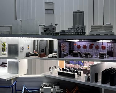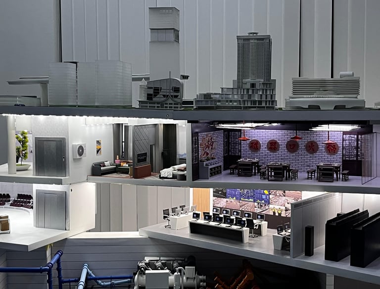 Maket Imersif & Interaktif (Fokus pada pengalaman visual nyata melalui integrasi digital, sensor, mekanik kontrol IoT & pencahayaan dinamis)